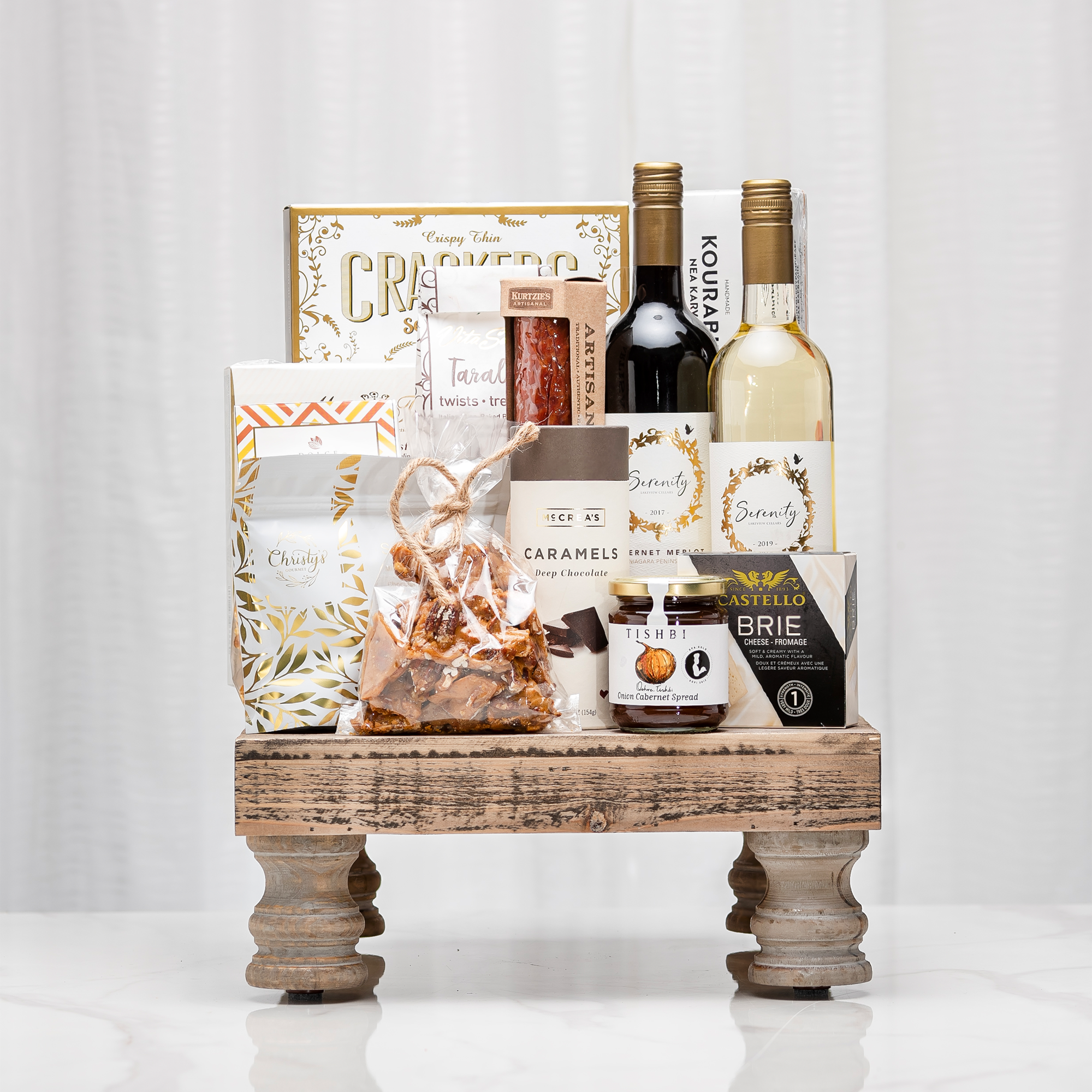 To complement the delectable treats, this basket also features two outstanding Serenity wines: a Cabernet Merlot red wine and a Sauvignon Blanc white wine. The Serenity Board Gift Basket is the epitome of sophistication and indulgence, making it an excellent choice for corporate gifting that will surely leave a lasting impression on recipients.
