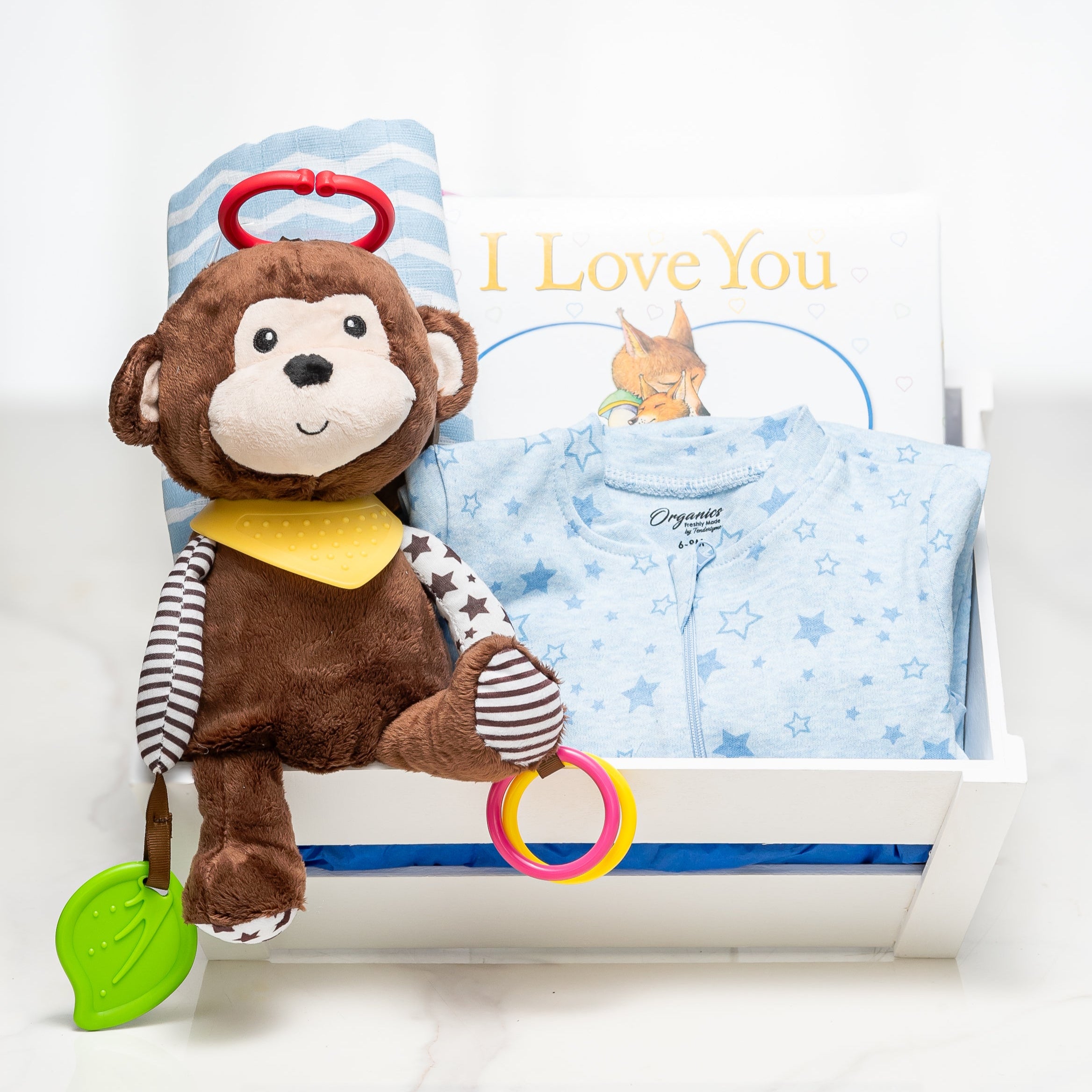 Celebrate a new bundle of joy with a charming unisex baby gift basket filled with cuddly essentials! From cozy blankets and adorable neutral-coloured outfits to soothing baby care items, it's a thoughtful and practical gift that any new parent will love and appreciate.