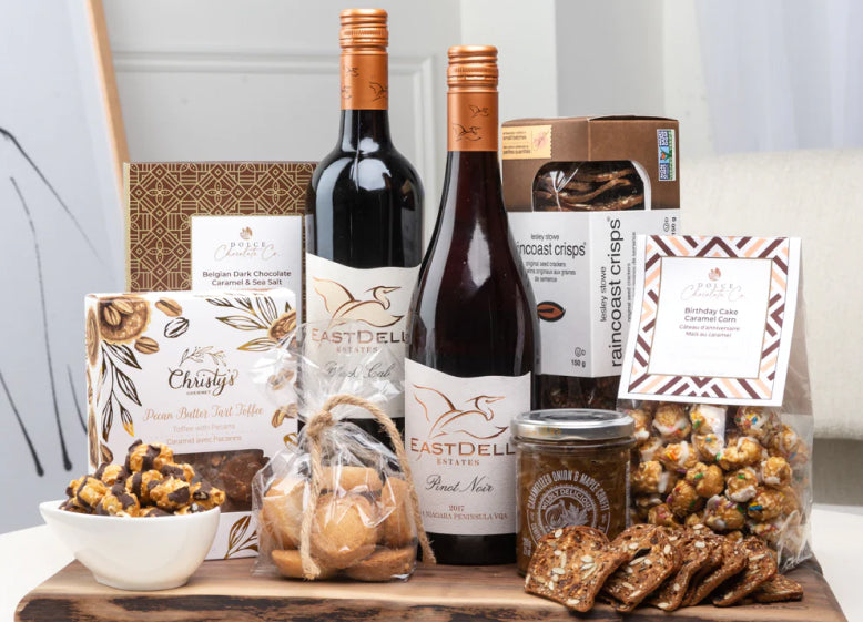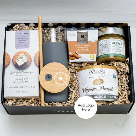 Heartwarming and beautifully displayed gourmet treats and tote bag to customize for your favourite clients & employees.
