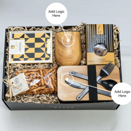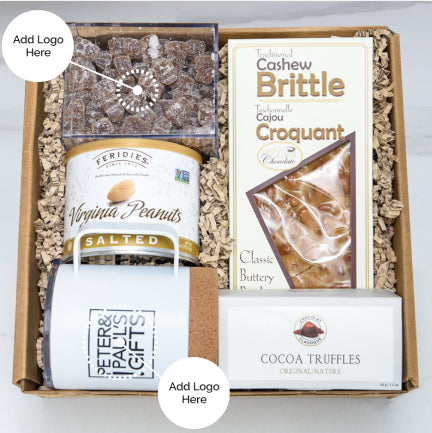 Deliver a display of your brand in an eye-catching handcrafted gift box. Includes a cozy desktop mug.