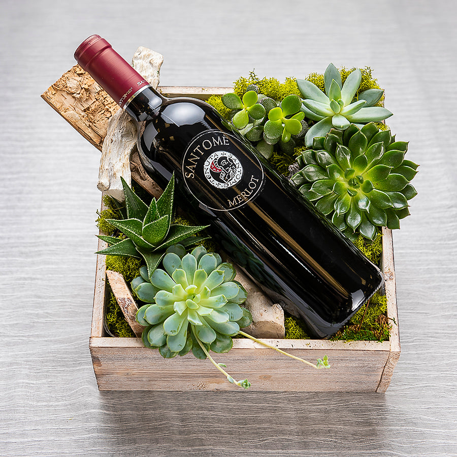 This luscious succulent planter combines the best of both worlds, hardy plants for any home or office and a bottle of Valle Secreto First Edition Cabernet Sauvignon 2013 Red Wine.